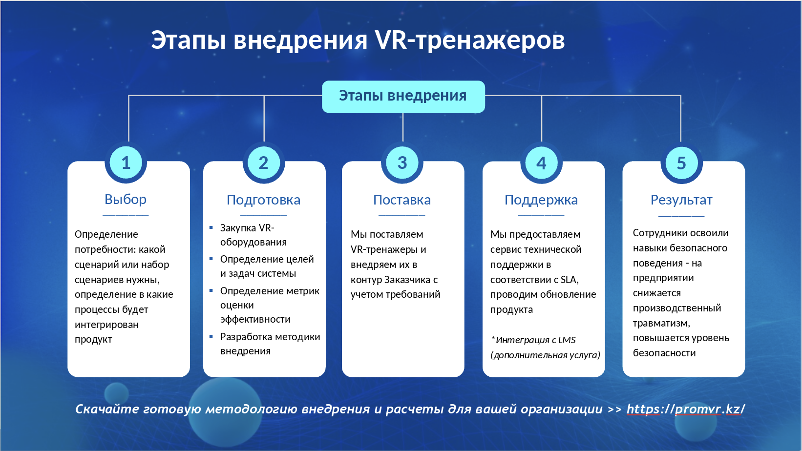 Скачайте подробную презентацию всех этапов и расчеты экономической эффективности внедрения VR-тренажеров на вашем предприятии.